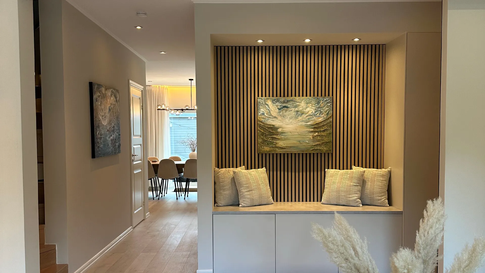 Aqui encontrará painéis acústicos com ripas de madeira e a nossa manta acústica de absorção de som RecoSilent. Os painéis acústicos são fabricados nas maiores fábricas de folheados da Suécia, Wallsystems, em Tranås, e montados na nossa fábrica em Vittaryd.